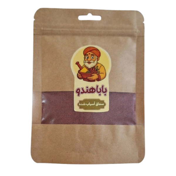 تهیه شده از بهترین مزارع شهر تبریز، با عطر و طعم بی نظیر این ادویه ی اصیل، طعمی بسیار مطلوب به غذاهای شما می دهد و برای انواع کباب و غذاهای گوشتی فوق العاده است.\r\nترکیبات: سماق آسیاب شده ۱۰۰ درصد خالص\r\n\r\nتولید و بسته بندی: برند باباهندو